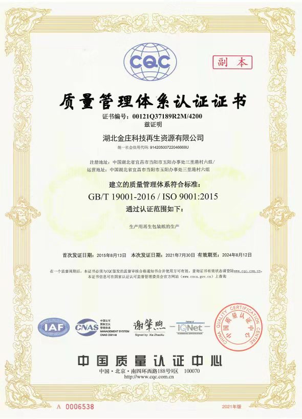 湖北金莊科技再生資源有限公司是以生產(chǎn)再生包裝紙和為工業(yè)園區(qū)集中供熱的資源綜合利用加工服務(wù)型企業(yè)。公司位于當(dāng)陽(yáng)市金橋工業(yè)園,成立于2000年,注冊(cè)資本15486.72萬(wàn)元,占地面積近400畝,現(xiàn)有員工500余人。 自成立以來(lái),公司始終堅(jiān)持“誠(chéng)信、創(chuàng)新、共贏”的經(jīng)營(yíng)理念,努力踐行“資源再生綜合利用,堅(jiān)持綠色能源可持續(xù)發(fā)展,以為社會(huì)提供綠色可持續(xù)穩(wěn)定適用的產(chǎn)品為己任”的經(jīng)營(yíng)方針。